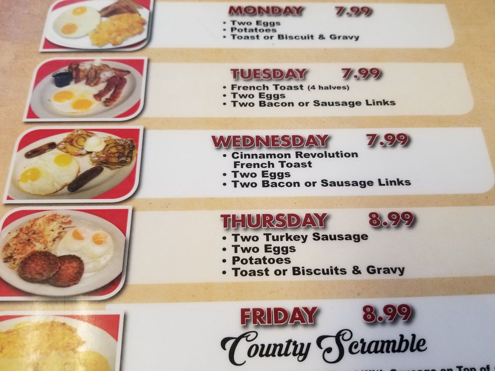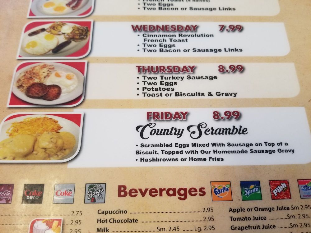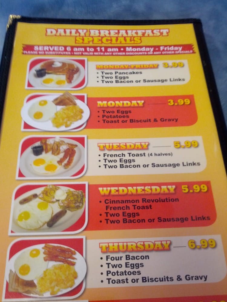 Served with vegetables and hot bread. choice of one item french fries onion rings mexican rice. mashed potatoes and gravy after am baked potato with butter and sour cream after pm.